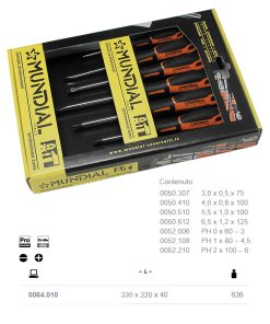 Serie 7 Giraviti Cacciaviti MUNDIAL a Taglio e Croce PH Set Kit in Acciaio Cr-Mo Punta Nera 0064.010