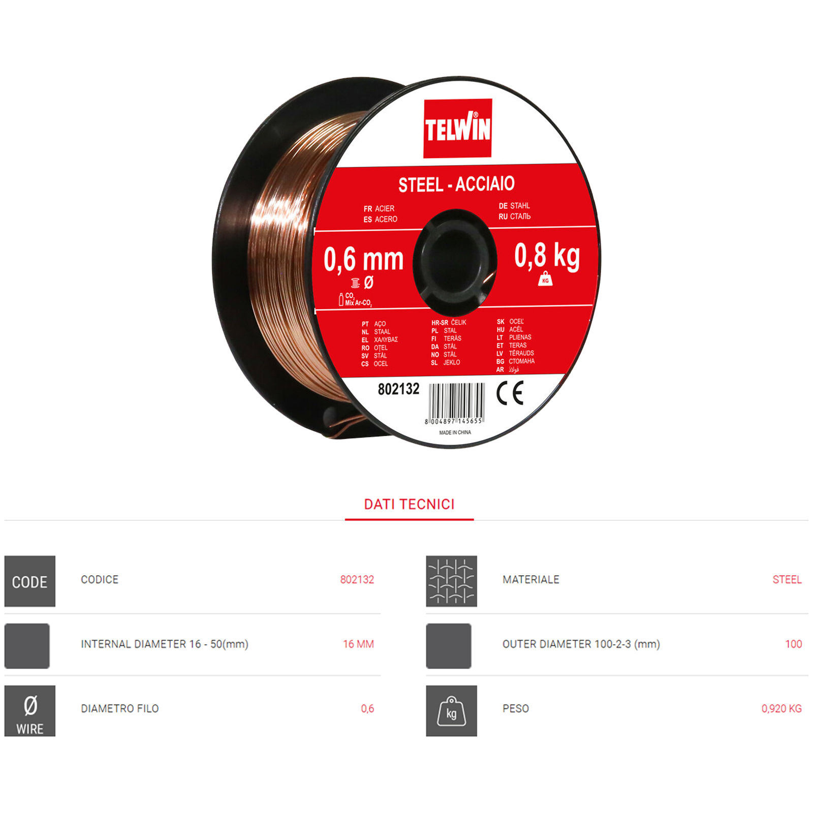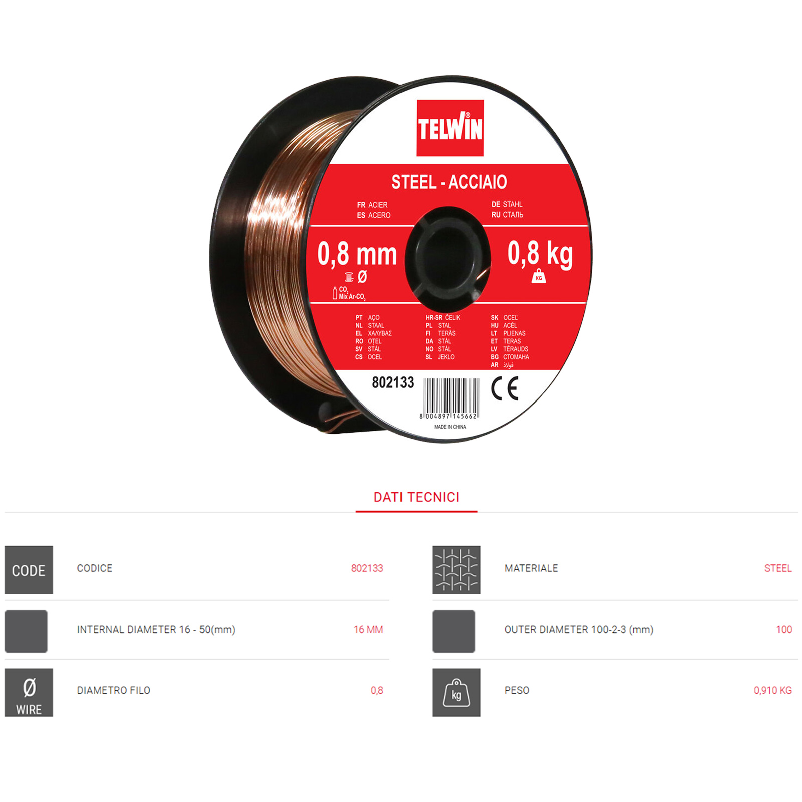 Peso di ciascuna bobina: 0,8 Kg