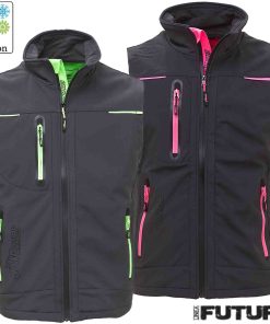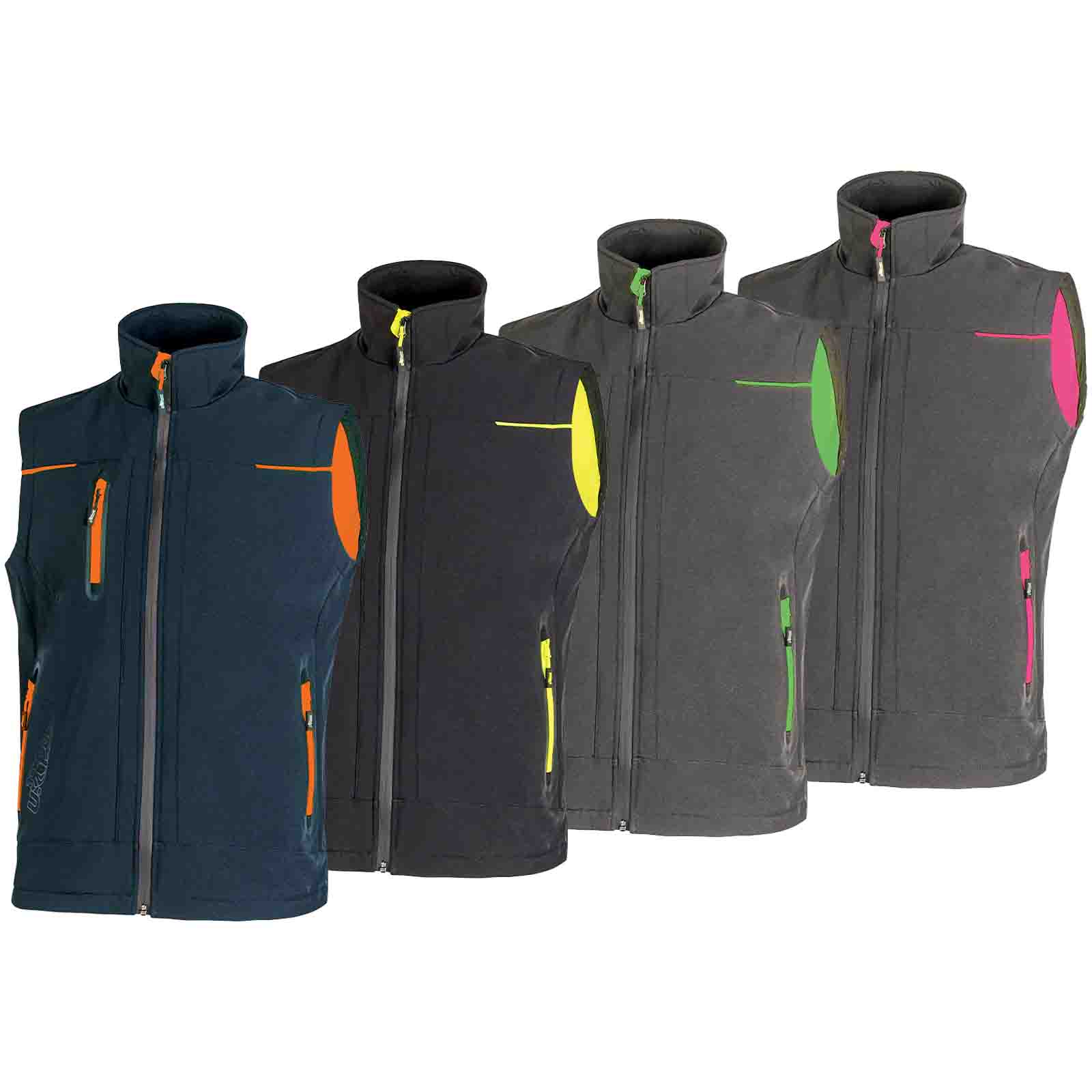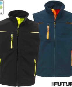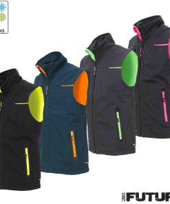 Dotato di due tasche frontali chiuse con zip fluo e coulisse anti-impigliamento regolabile all’interno