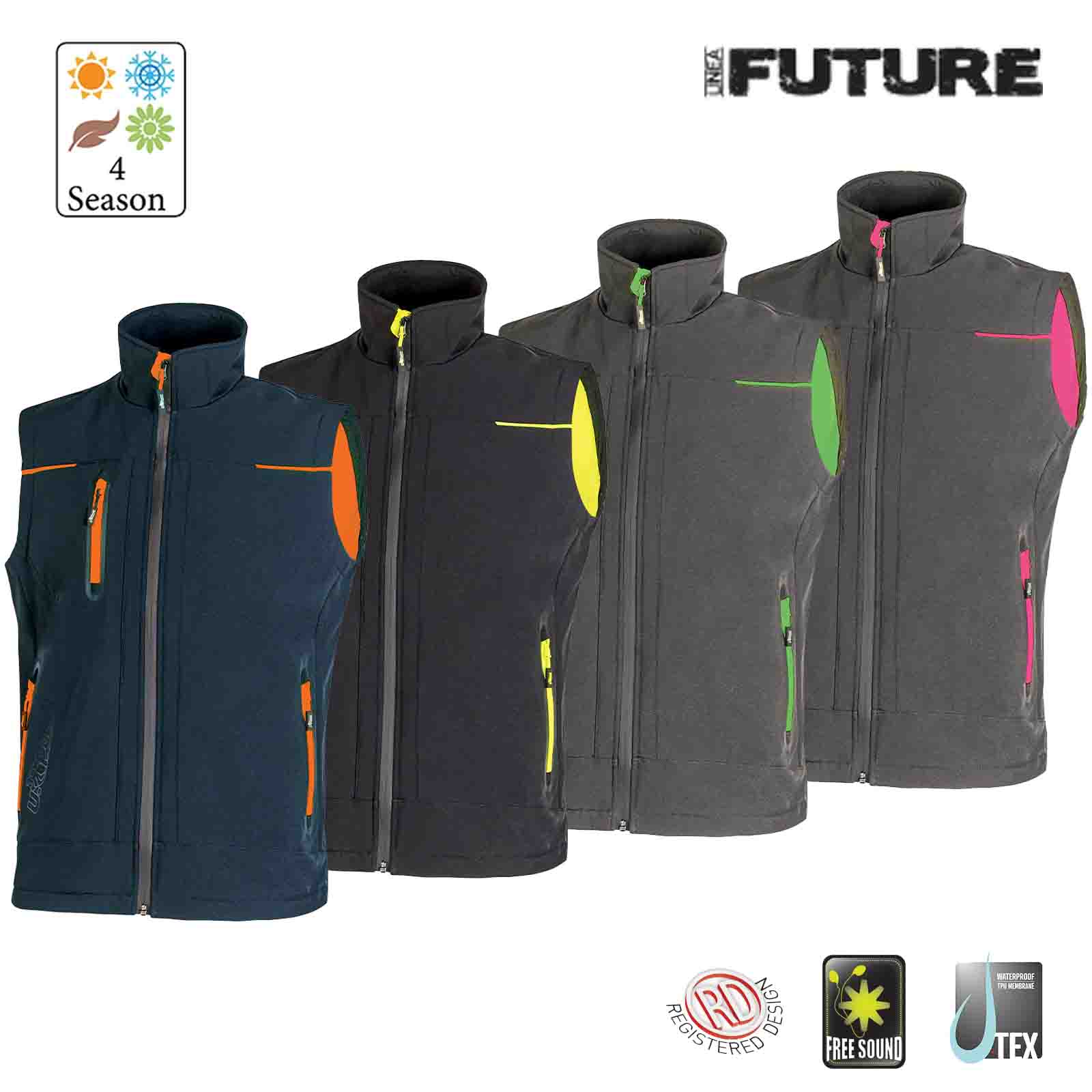 Una tasca porta cellulare sul petto con tecnologia Free Sound chiusa con zip fluo