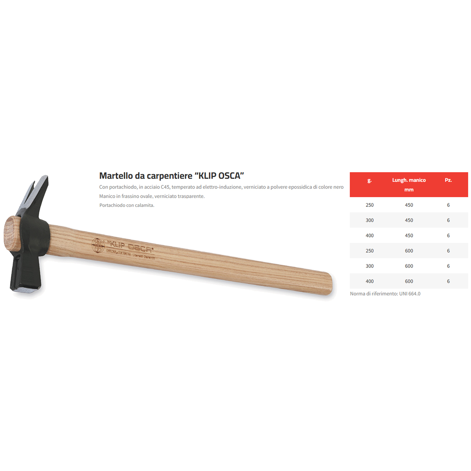 Il martello da carpentiere “KLIP OSCA” con porta-chiodo calamitato è uno strumento professionale progettato per garantire affidabilità, durata e praticità durante le operazioni di carpenteria.
