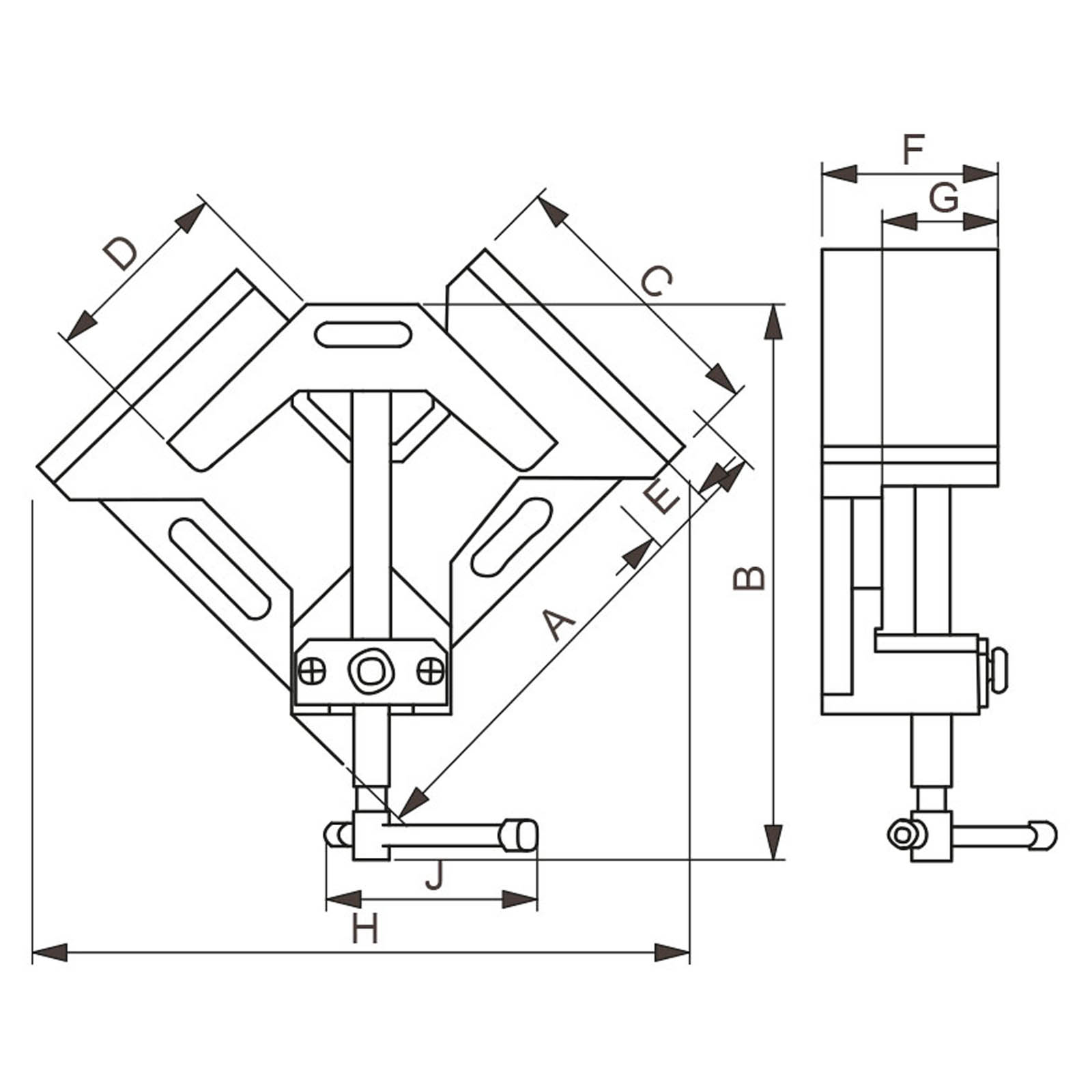 Il morsetto ad angolo retto è realizzato in lega di alluminio di buona qualità con il disegno della nervatura strutturale che garantisce la durata dell’utensile stesso.