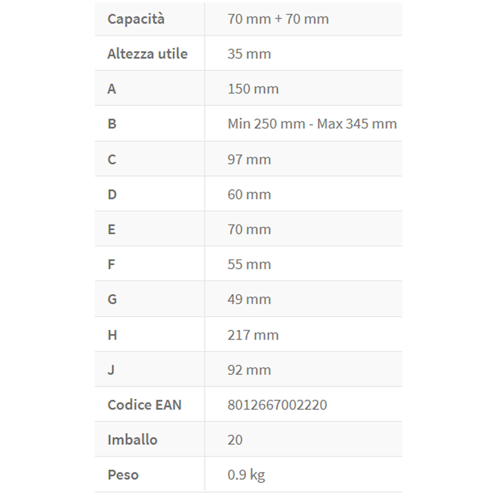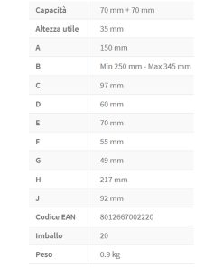 Il campo di serraggio massimo è di 70 mm.