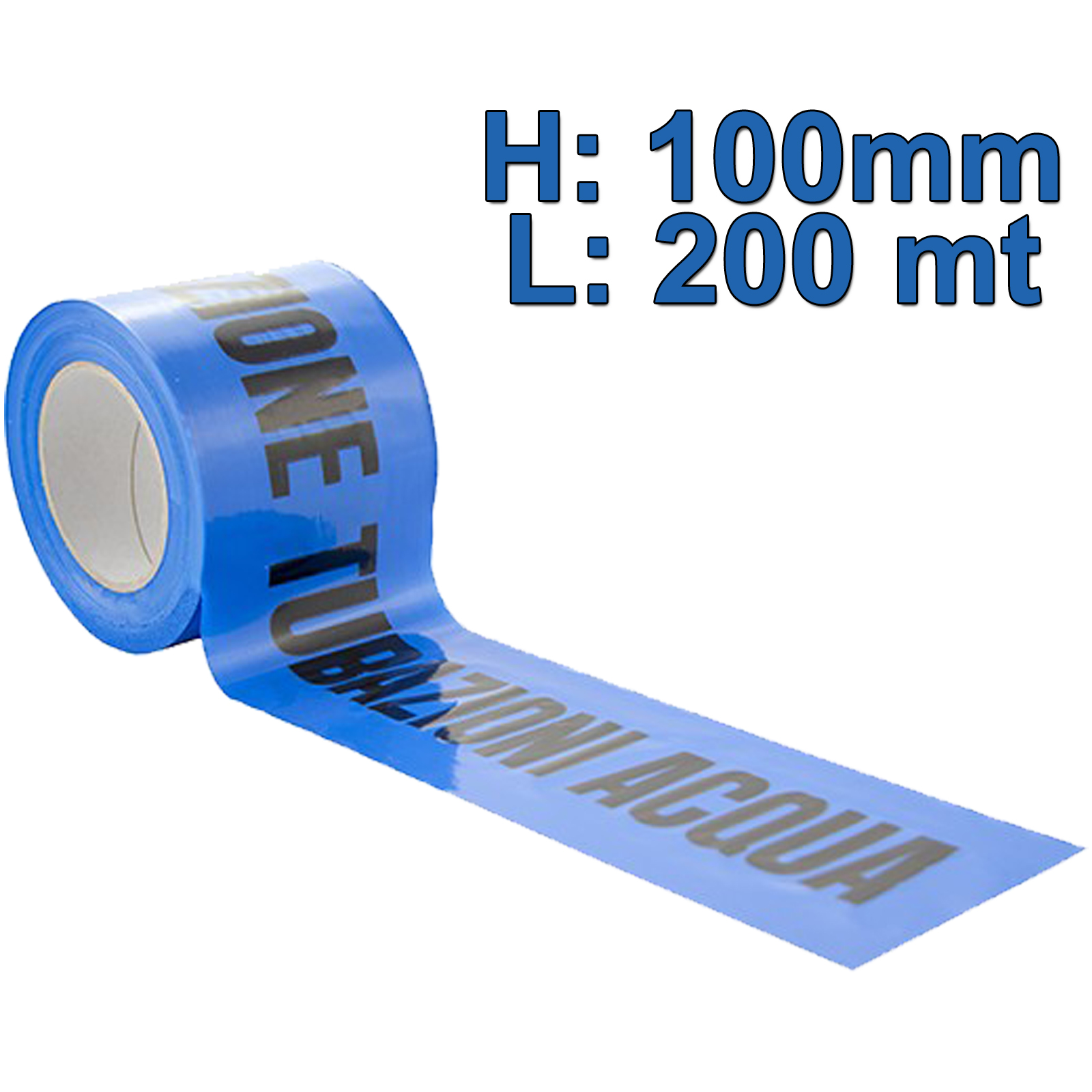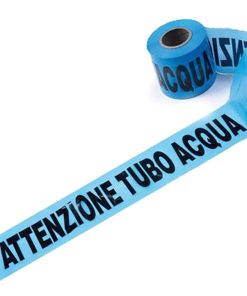 Nastro blu segnaletico “ATTENZIONE TUBO ACQUA” in materiale plastico, non adesivo.