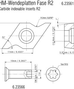 2 placchette rivoltabili in metallo duro smusso 45° (ISO: DCMT 11 T 304)
