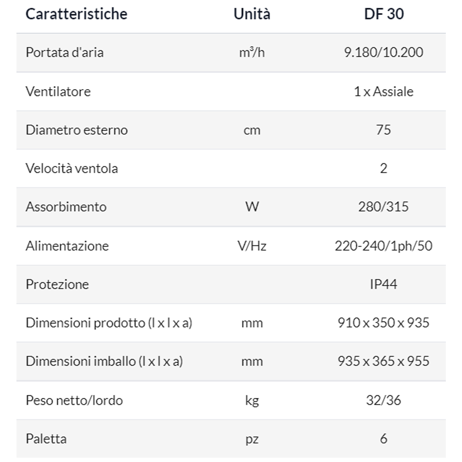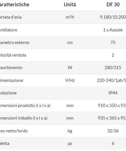 Ventilatore Industriale ad Alta Portata 10.200 m³/h MASTER Portatile Orientabile 2 Velocità in Acciaio modello DF 30P